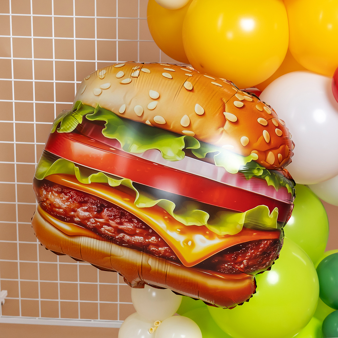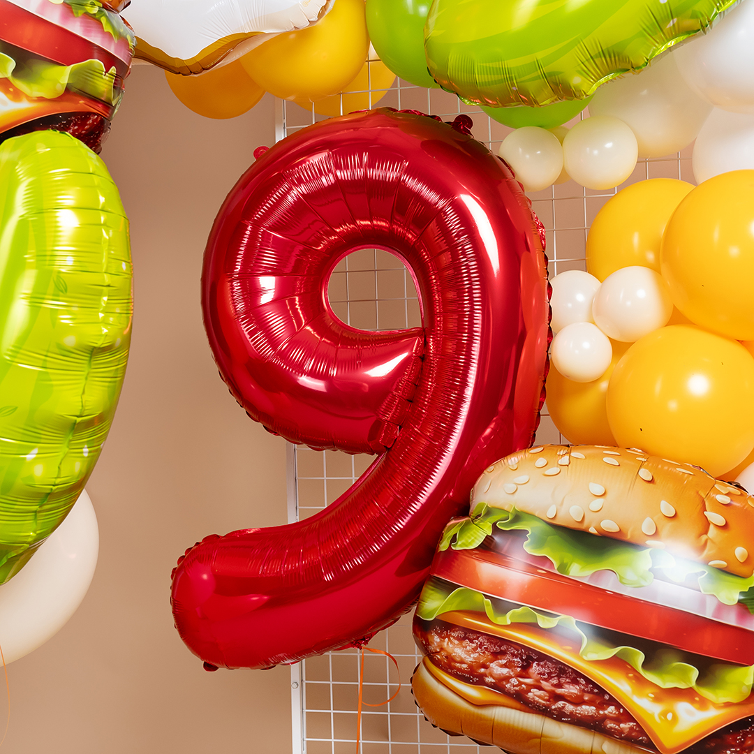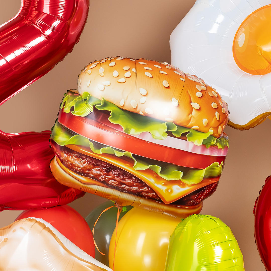 Яркая фотозона с фастфудом создаёт атмосферу драйва, юмора и настоящего гастро-праздника. Объёмные фигуры притягивают внимание и делают оформление эффектным и запоминающимся. Насыщенная цветовая палитра добавляет композиции динамики и современного настроения.