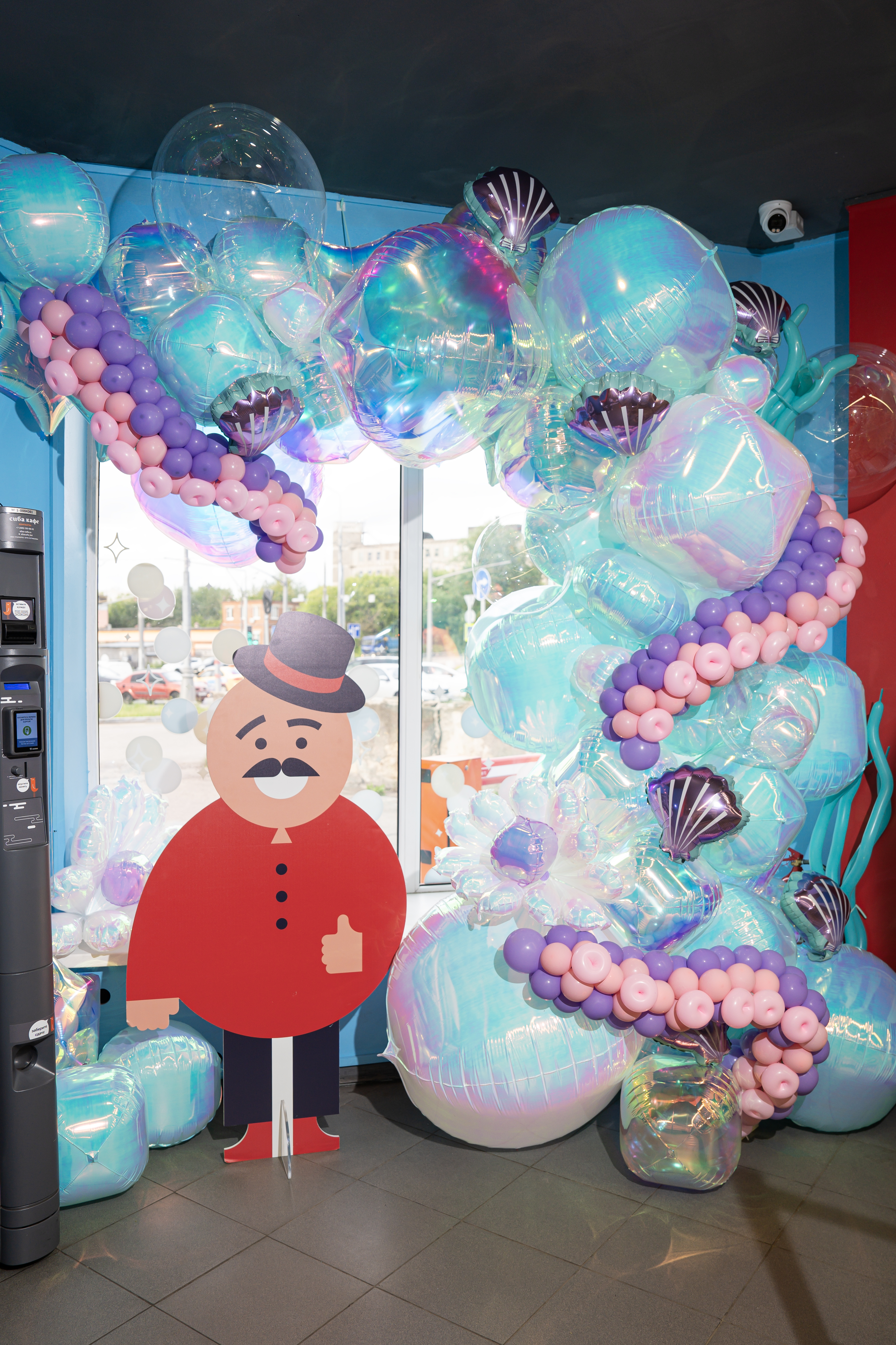 Воздушная фотозона в морском стиле создаёт атмосферу лёгкости, фантазии и настоящего подводного волшебства. Перламутровые и прозрачные сферы с нежным переливом, эффектные щупальца осьминога погружают нас в морские глубины.