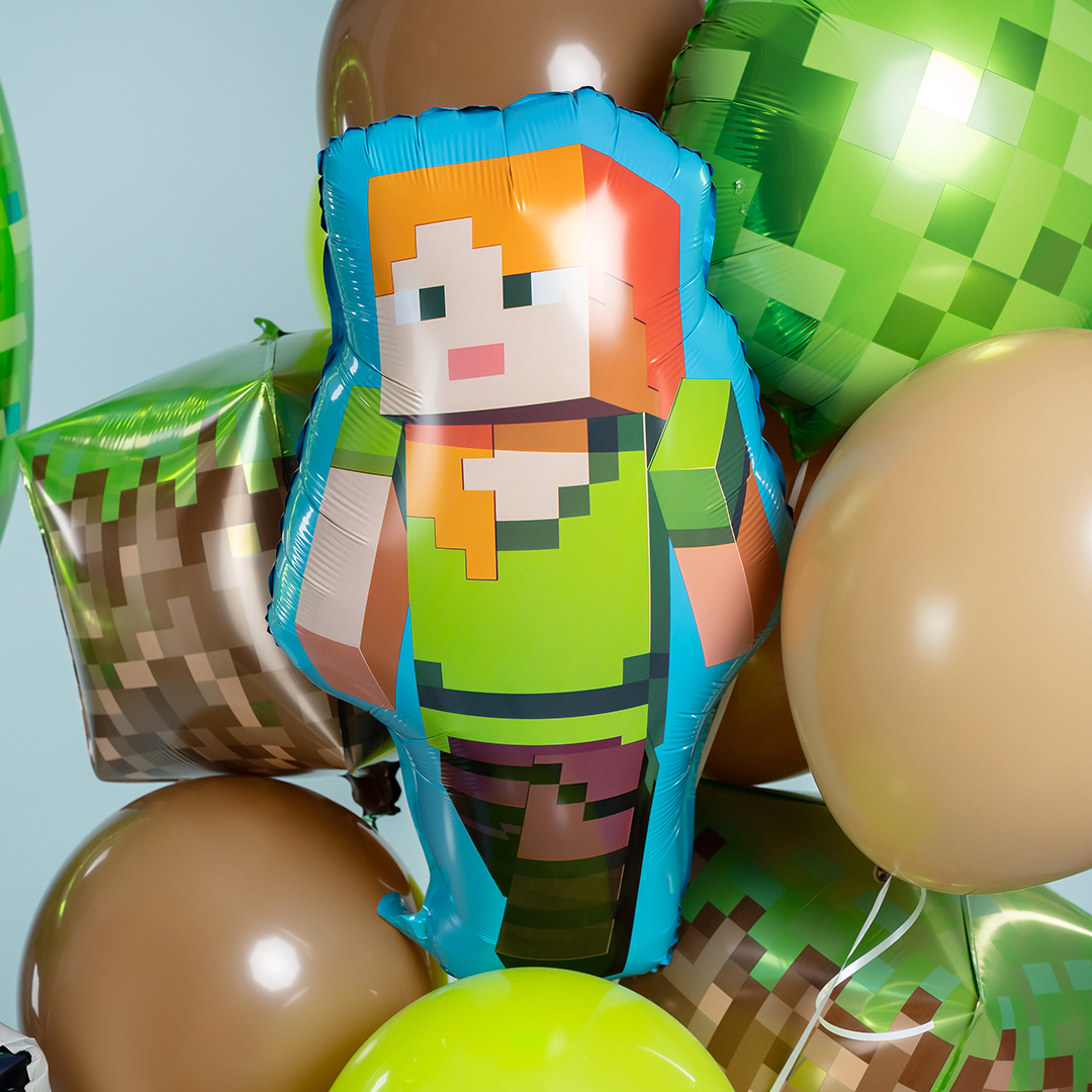 Яркая фотозона в стиле популярной игры создаёт атмосферу приключений в цифровоом мире, знакомого каждому ребёнку. Узнаваемые персонажи, пиксельный дизайн и насыщенные зелёные оттенки делают фотосессию динамичной, современной и очень эффектной.